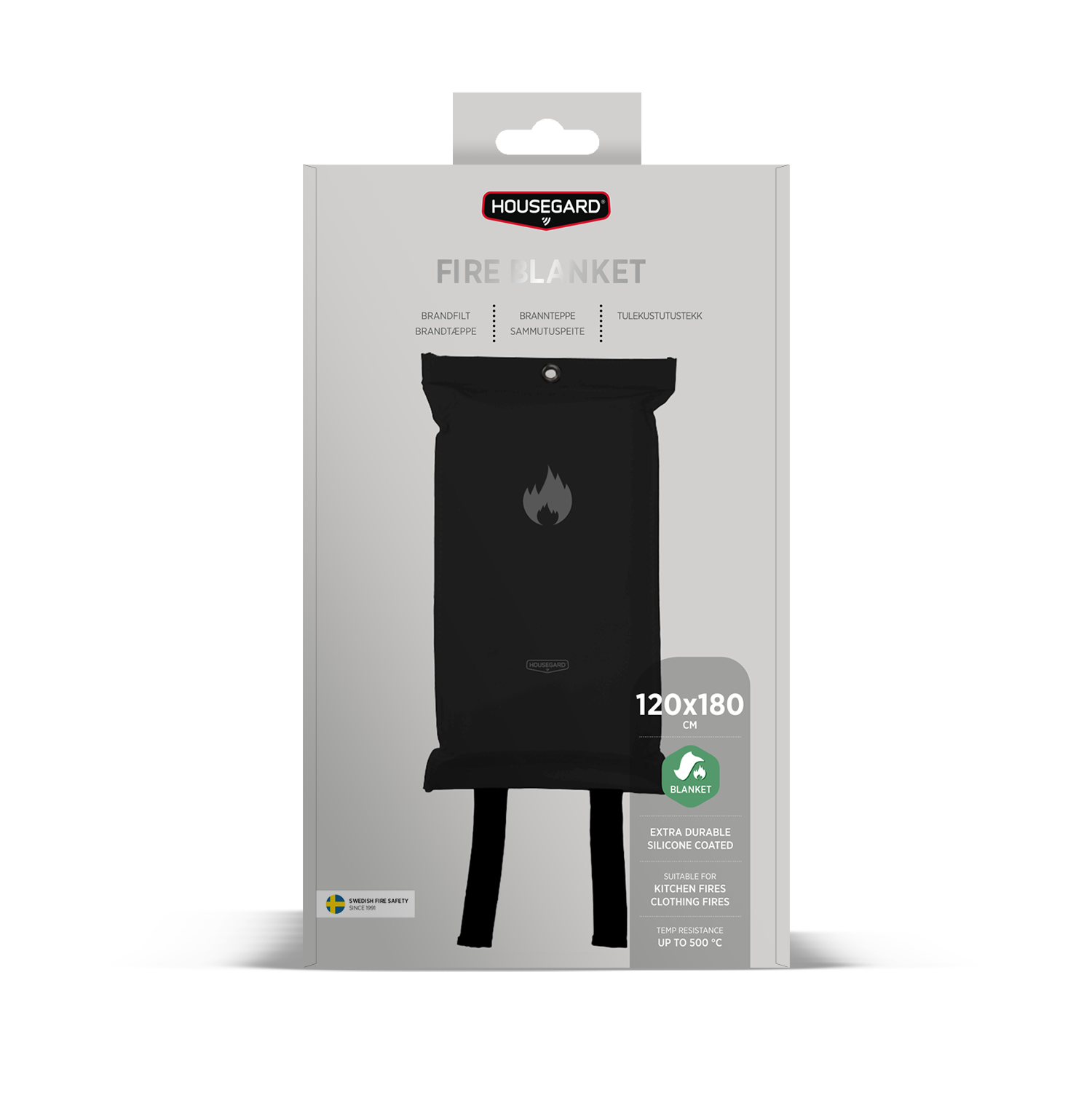 Housegard brannteppe 120 x 180 cm er et praktisk supplement til brannslukkeren, som først og fremst slukker mindre branner på komfyr, i møbler, klær og mennesker. Å kvele flammen med et brannteppe er veldig effektivt, og krever mindre saneringsarbeid.