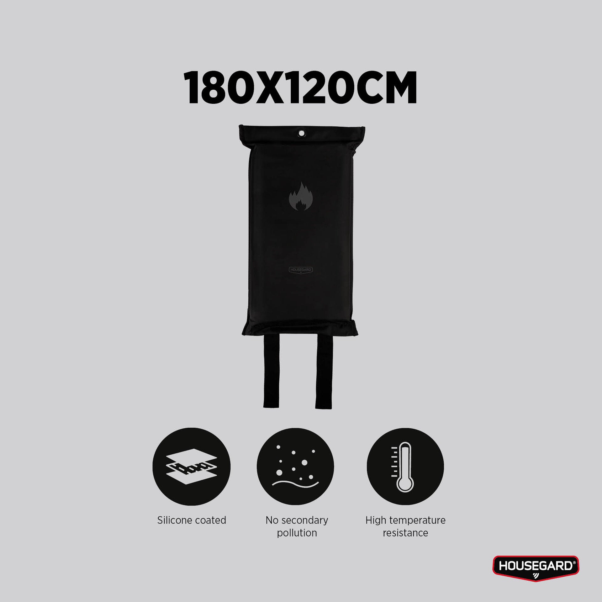 Housegard brannteppe, 120x180 cm, sort, silikonbelegg