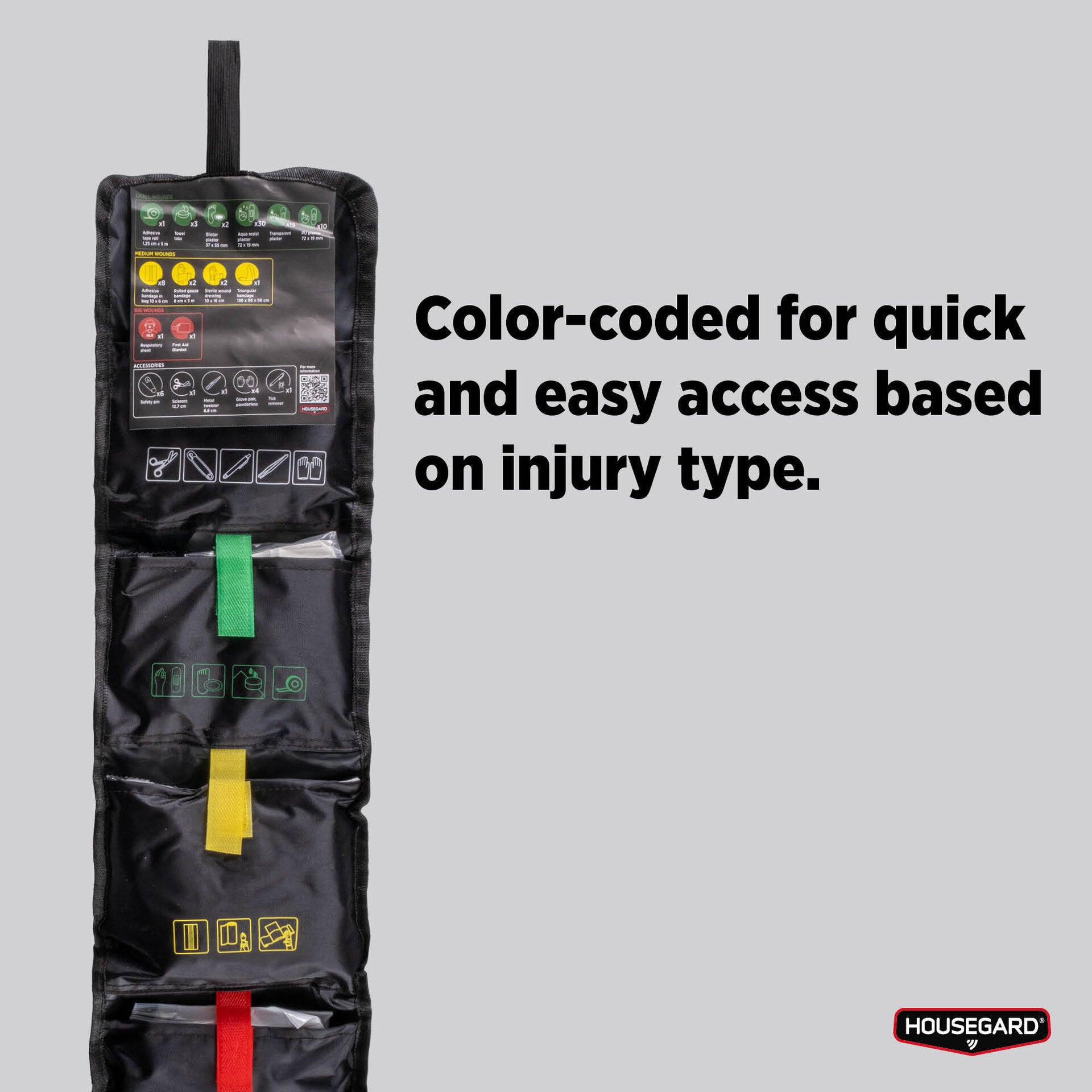 Housegard Waterproof er en vanntett førstehjelpsveske som gjør at du kan være forberedt på ulykker selv under tøffe utendørsforhold. Vesken inneholder alt du trenger for å håndtere små og middels store sår og skader, og den holdbare designen gjør at den tåler å være ute i regn eller fuktige miljøer.